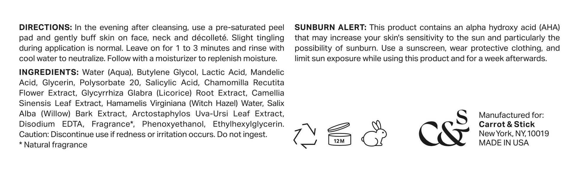 Step 1 After your evening cleansing ritual, use a pad to gently buff face, neck and décolleté. A slight tingling sensation is expected. Step 2 Leave on for 1 to 3 minutes and rinse with cool water to neutralize formula.